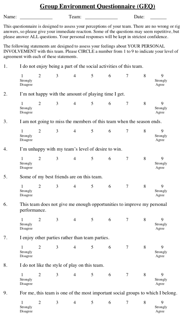 Group Environment Questionnaire (GEQ):